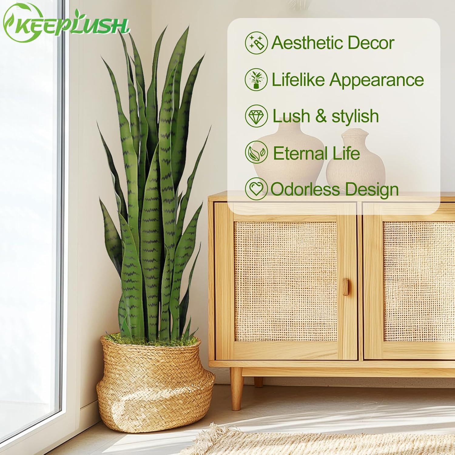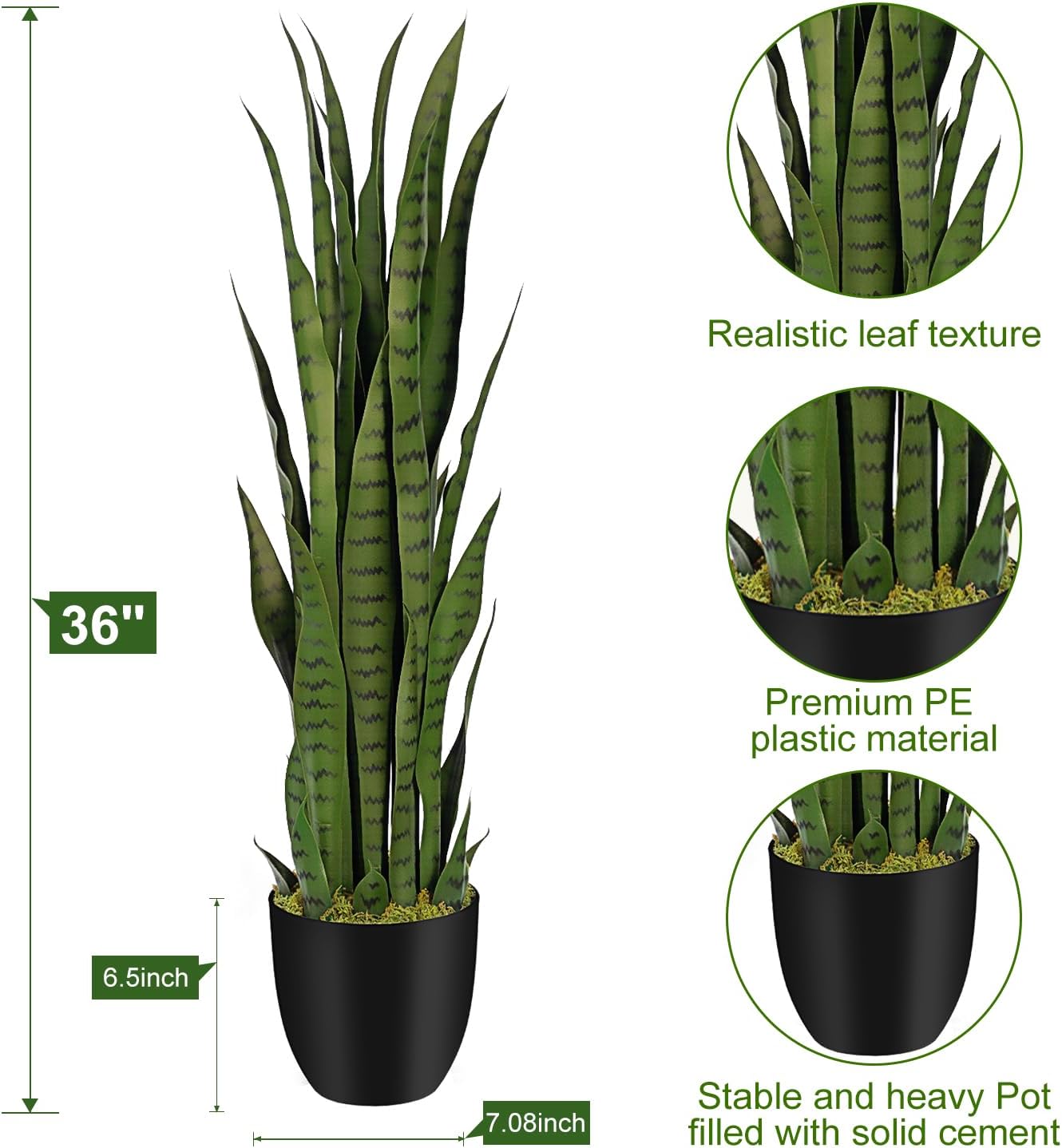 3ft Artificial Snake Plant – 36in Faux Sansevieria Plants, Fake Floor Plant for Indoor Outdoor, Front Porch Patio Home Office Decor, Mother-in-Law’s Tongue, Green 1Pcs