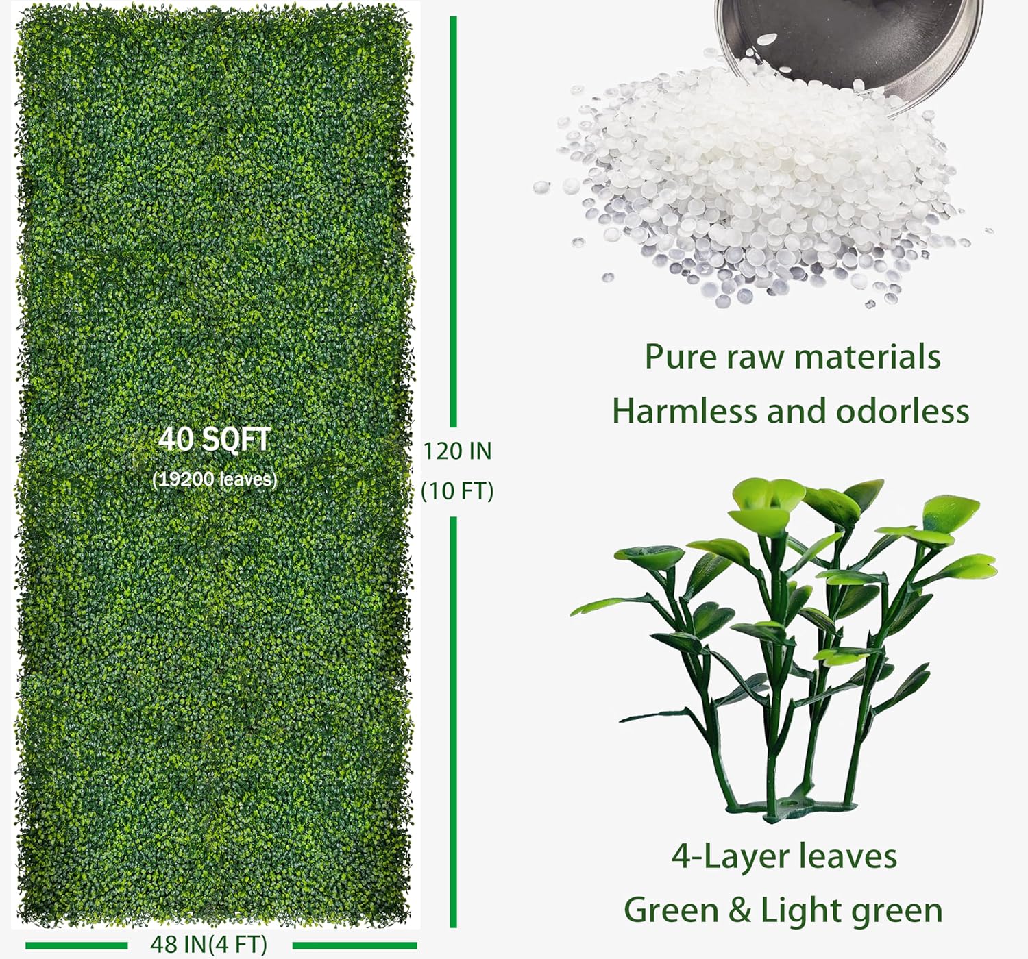 Artificial Boxwood Roll Panels,48 X 120 in(40 sqft) UV-Anti Artificial Ivy Privacy Fence Wall Screen for Indoor Outdoor Green Grass Wall Decor & Ivy Fence Covering Privacy
