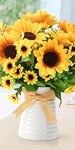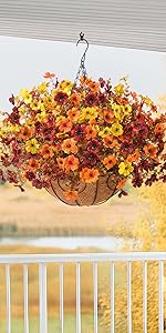 The fake autumn flowers with vise are made of premium silk, real-like,no watering,Maintenance-free,sturdy enough in all weather to bloom all year round,keeping gorgeous autumn colors for a long time.