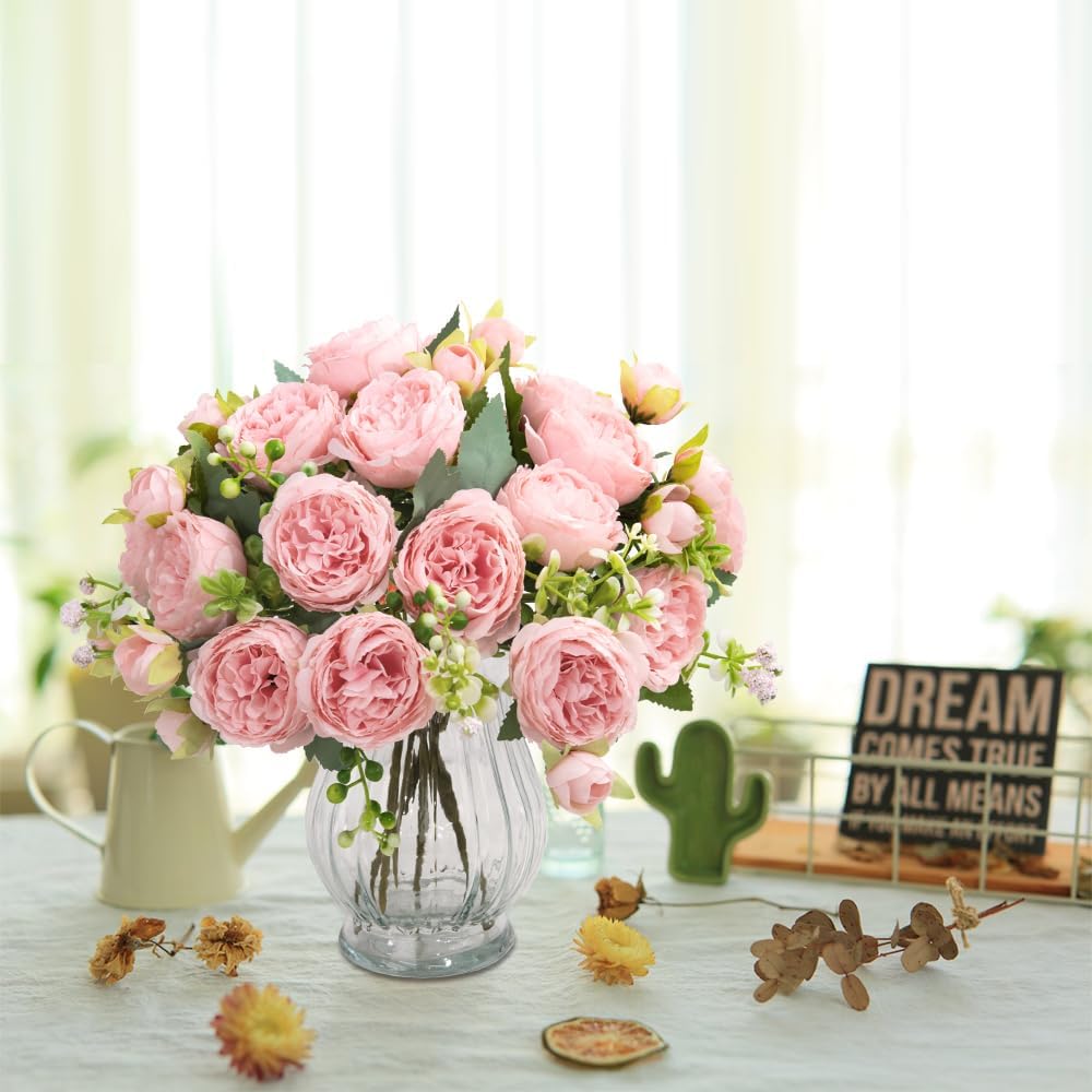 - Bring the glass vase with Peony to decorate your home or balcony or garden, you will find that it bring your home more special, elegant.