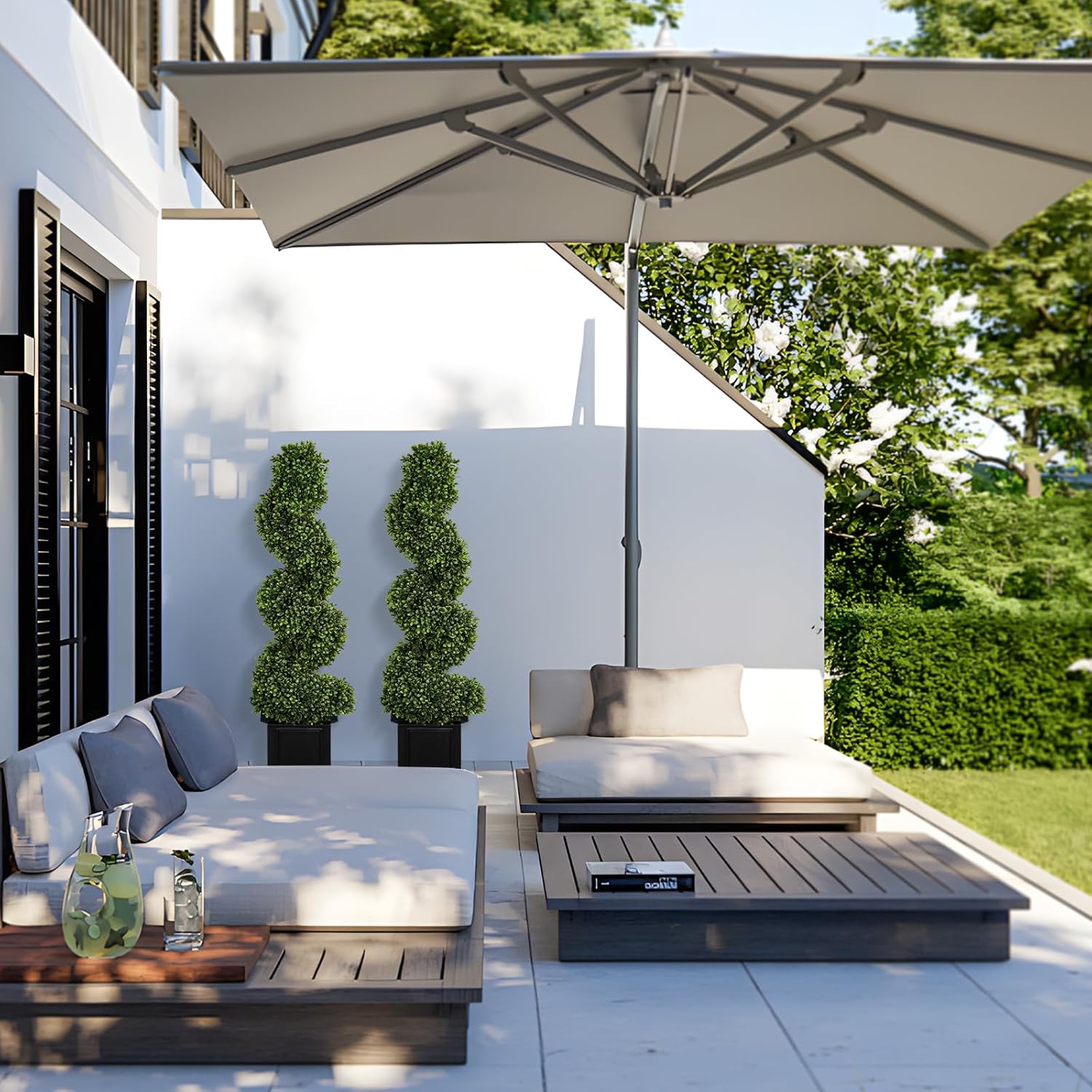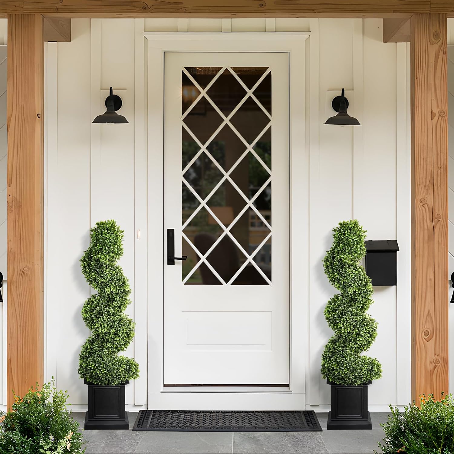 Boxwood Outdoor Topiary Set of 2, 3.5ft Tall Porch Trees, All-Year Green Fake Plant Topiary Trees Artificial Outdoor with Sturdy Pot for Porch Indoor (Spiral)
