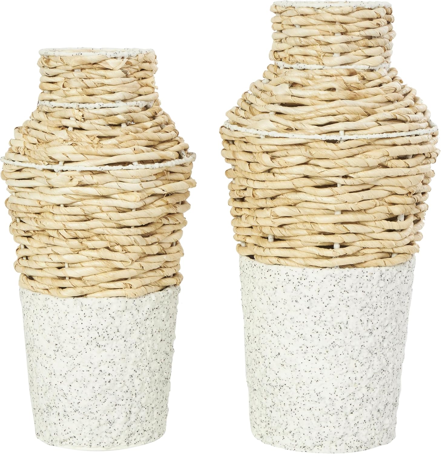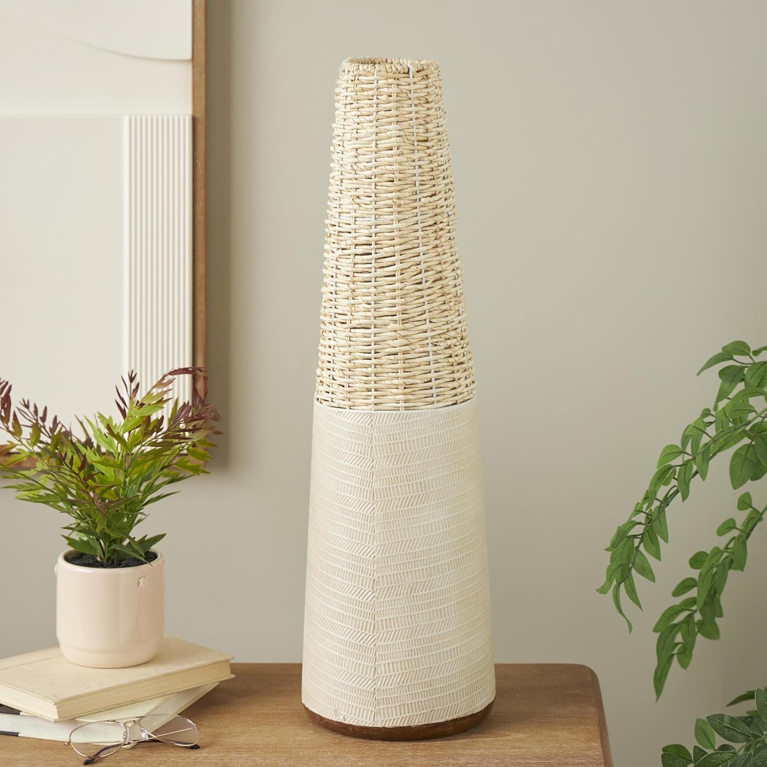 Deco 79 Rattan Geometric Handmade Decorative Vase Woven Centerpiece Vase with Beige Metal Base and Abstract Linear Markings, Vase for Home Decoration 8" x 8" x 26", Light Brown