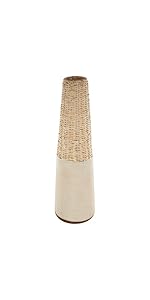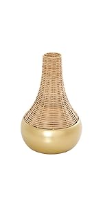 Fill this rattan vase with dried botanicals, or use it as a standalone decorative piece to enhance the aesthetic of any room. Designed with felt or rubber stoppers at the base that prevent scratching furniture and table tops, as well as sliding around. This item ships in 1 carton. Rattan vase makes a great gift for any occasion. Due to the handmade nature of this item, no two will be alike, there will be slight differences in shape, size, and color. Suitable for indoor use only. This item ships fully assembled in one piece. This is a single brown colored vase. Farmhouse style. Vase has a 2.10 in mouth opening.