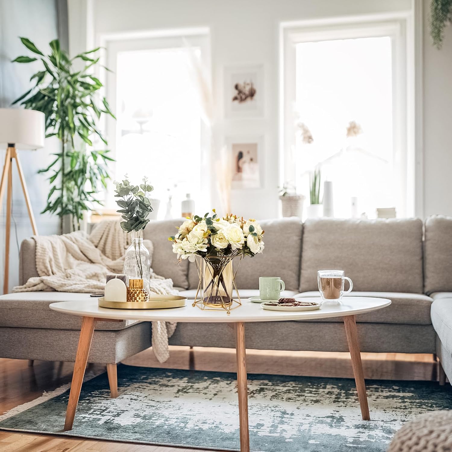 Faux Flowers with Vase, Silk Peony Bouquet Artificial Flowers in Vase, Fake Flowers Floral Arrangement for Home Decor Indoor, Table Centerpieces Flowers Decoration for Farmhouse (White Peony)