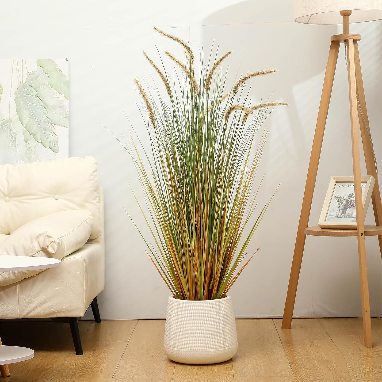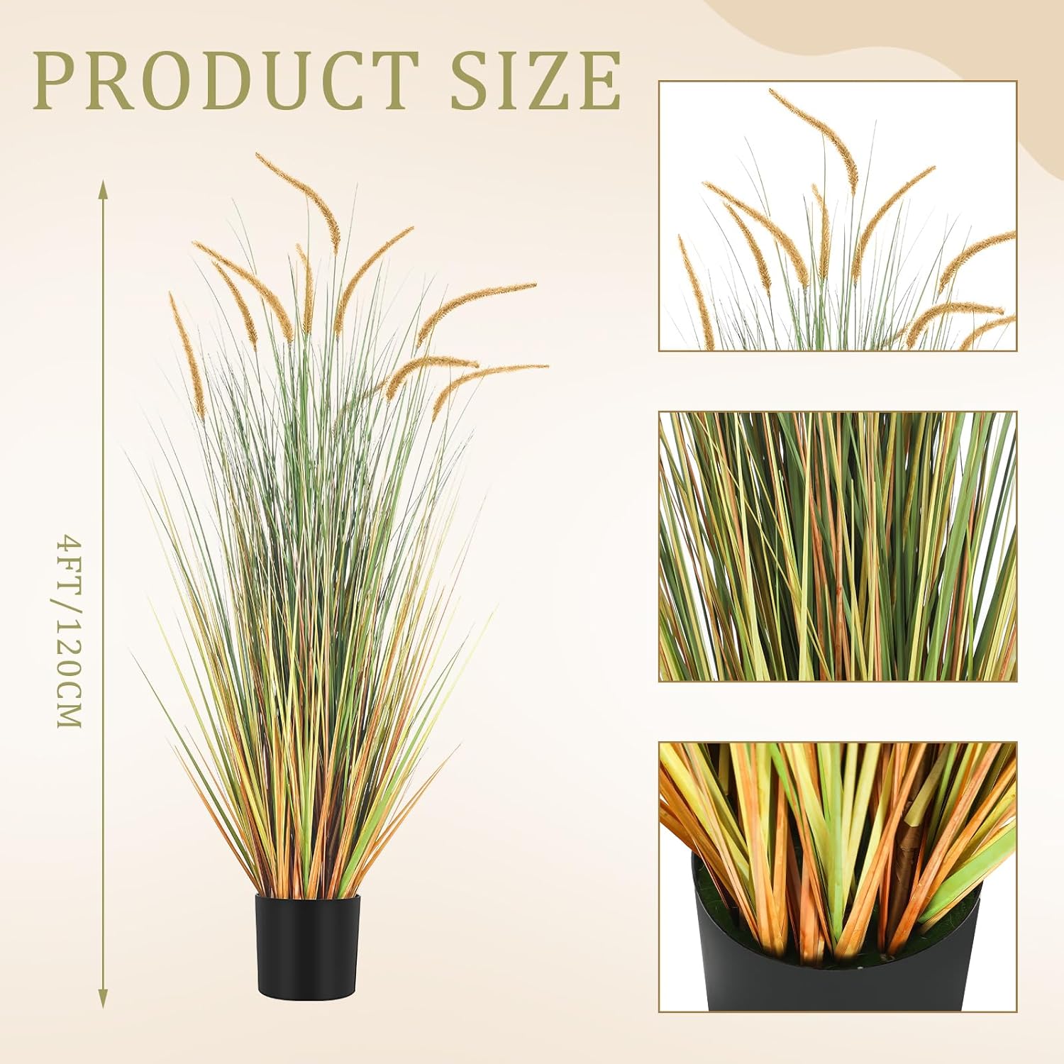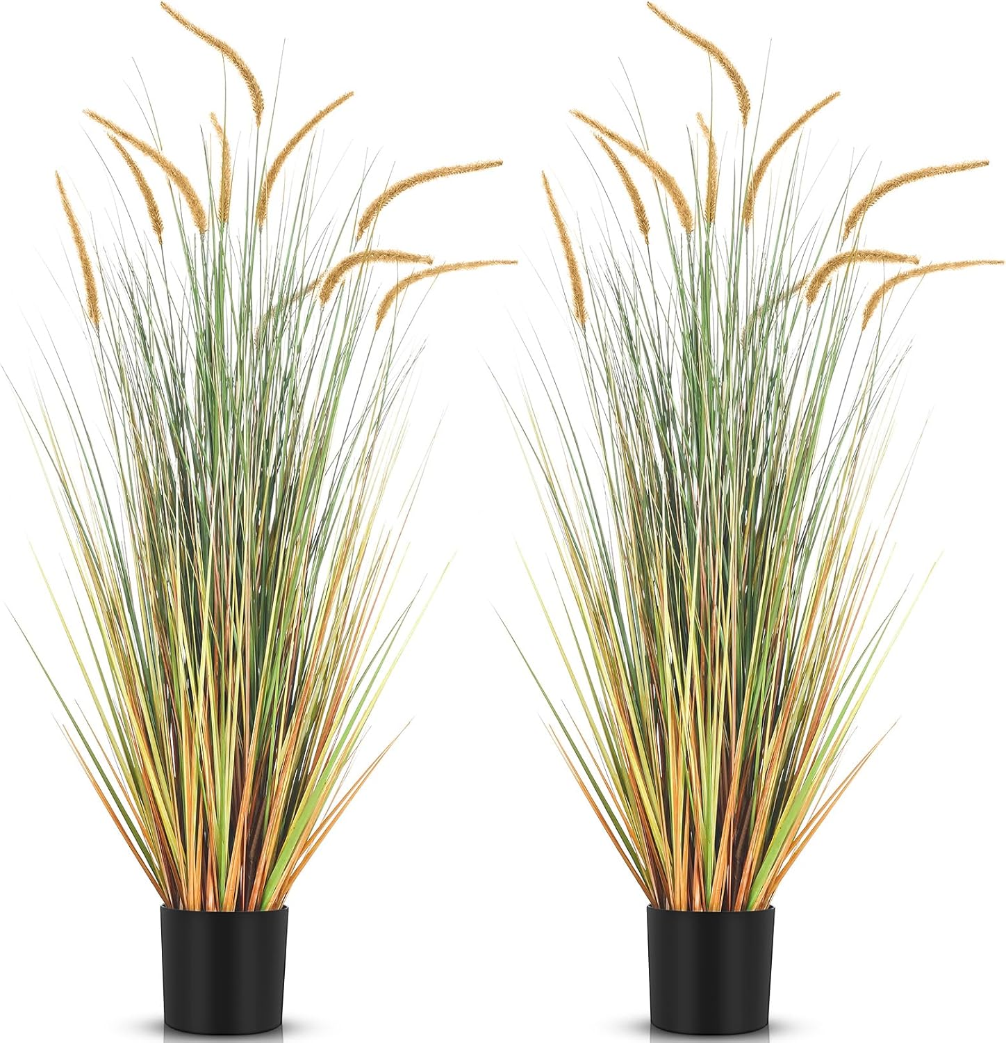 Jexine 2 Pieces Faux Plants Outdoor 4 ft Tall Artificial Grass Plant Potted Artificial Setaria Grass Faux Greenery Floor Plants for Housewarming Gift House Garden Bathroom Lobby Outdoor (Autumn Green)