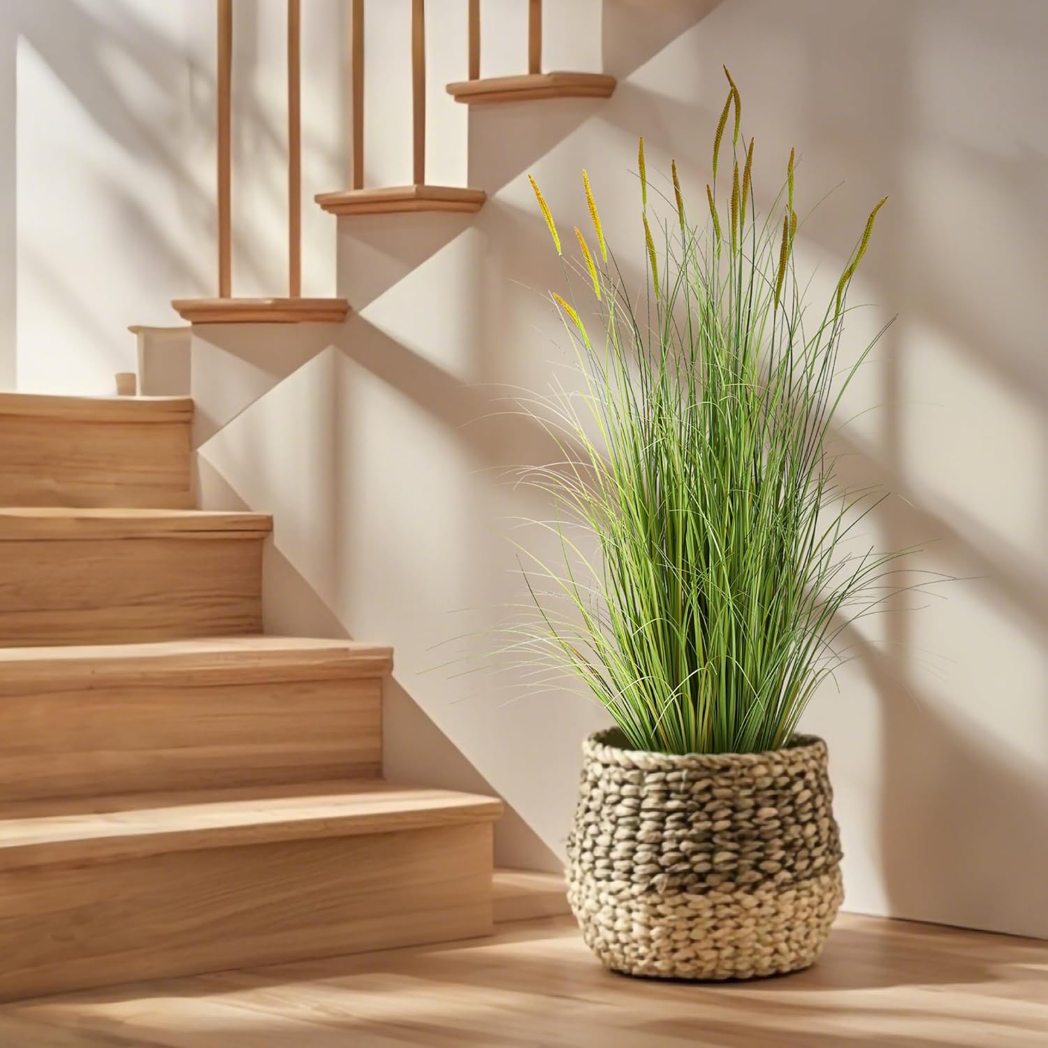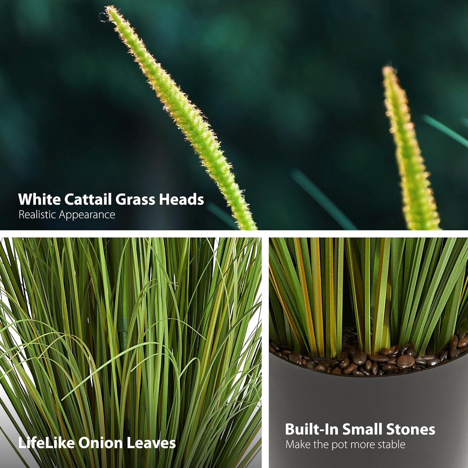 KOL 4ft 2-Pack Artificial Cattail Reed Grass, 47.2’’ Artificial Indoor Outdoor Fake Onion Grass Plant, Home Office Wedding Decorative Potted Plant Faux Greenery, Housewarming Gift, Green