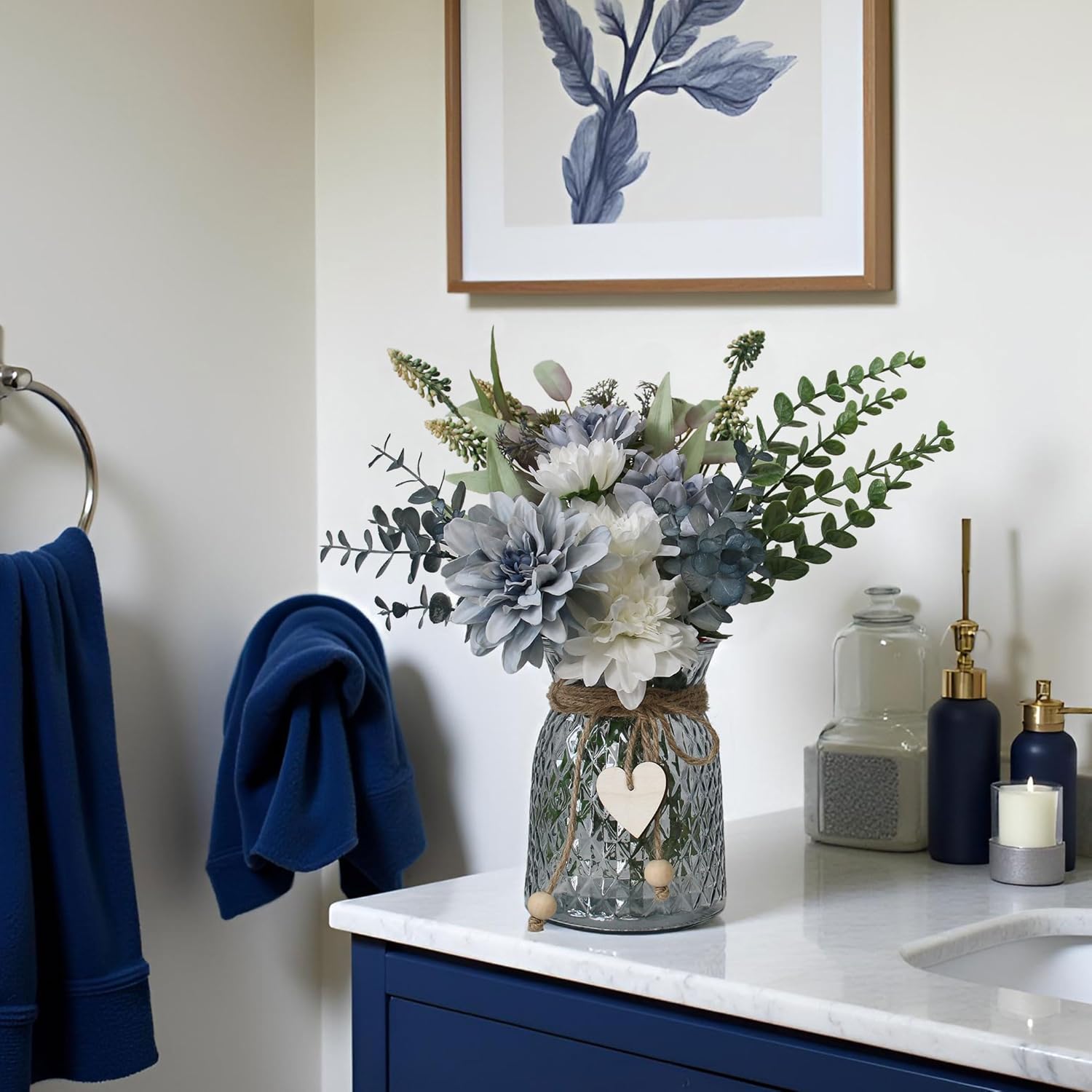 Leftover Fake Flowers in Vase,Faux Flowers in Vase,Table Centerpieces for Dining Room,Flower Centerpieces for Tables,Artificial Flowers,Kitchen Decor,Coffee Table Decor