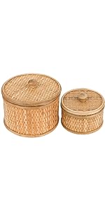 Rattan Decorative Box with Lid, Rectangular Woven with Glass for Display, Set of 2 Wicker for Decor