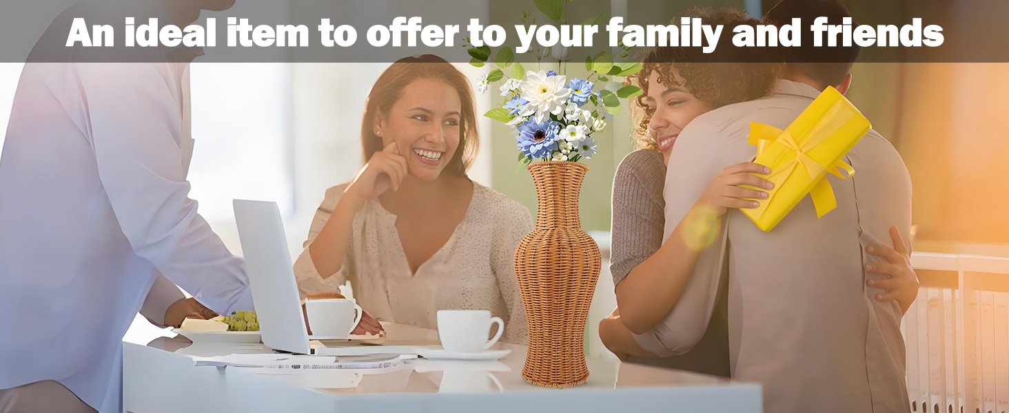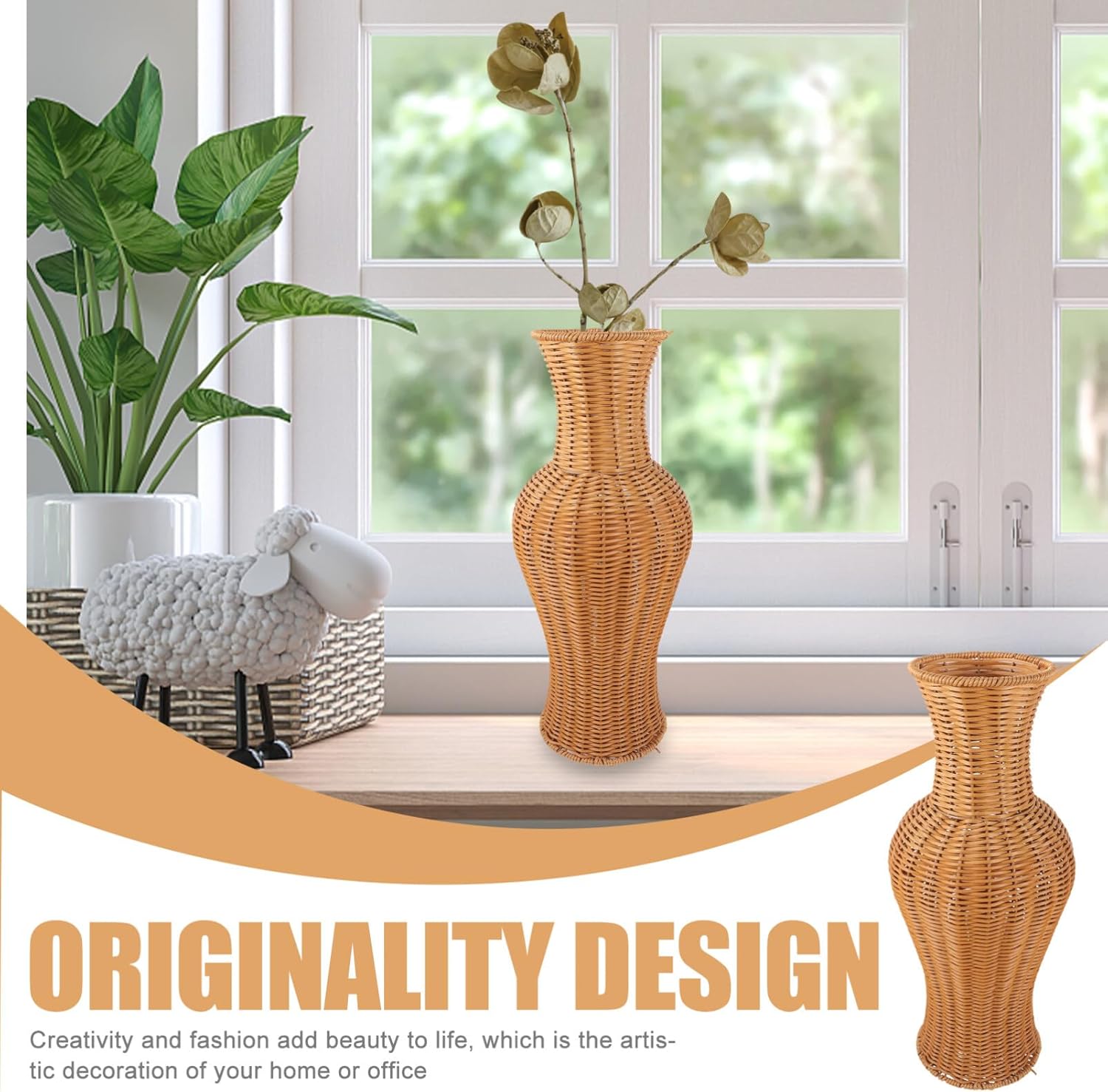 Rattan Woven Flower Vase - Elegant Rattan Vase Home Decor for Dried Flowers - Artificial Wicker Floor Vase for Home Office Decoration, Rustic Boho Design, 45X19cm/17.71X7.48inch