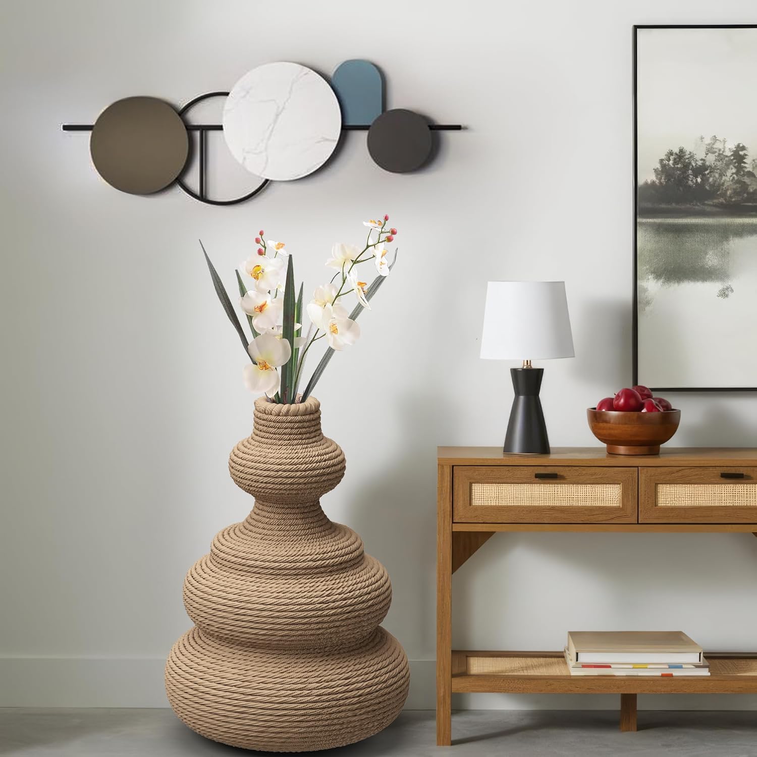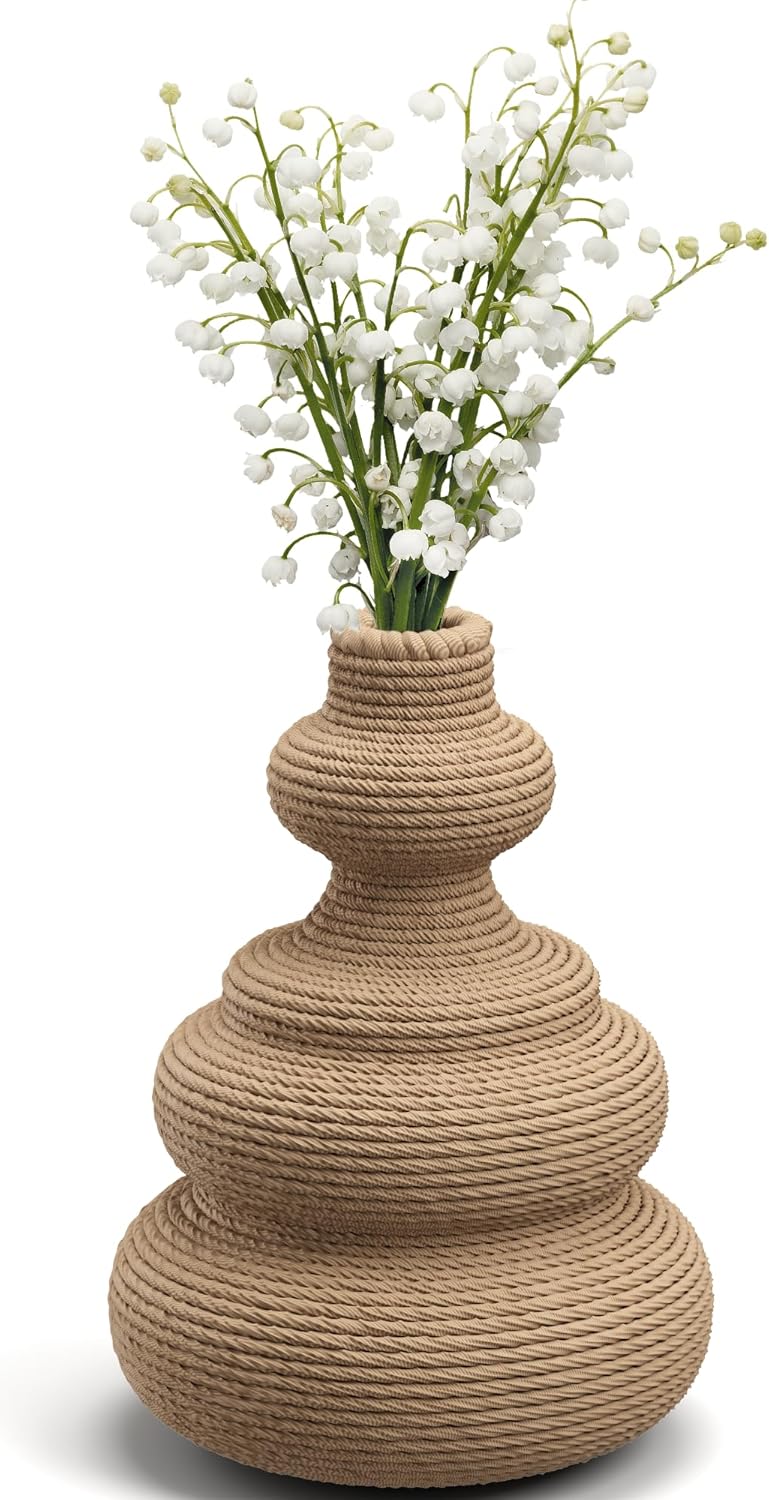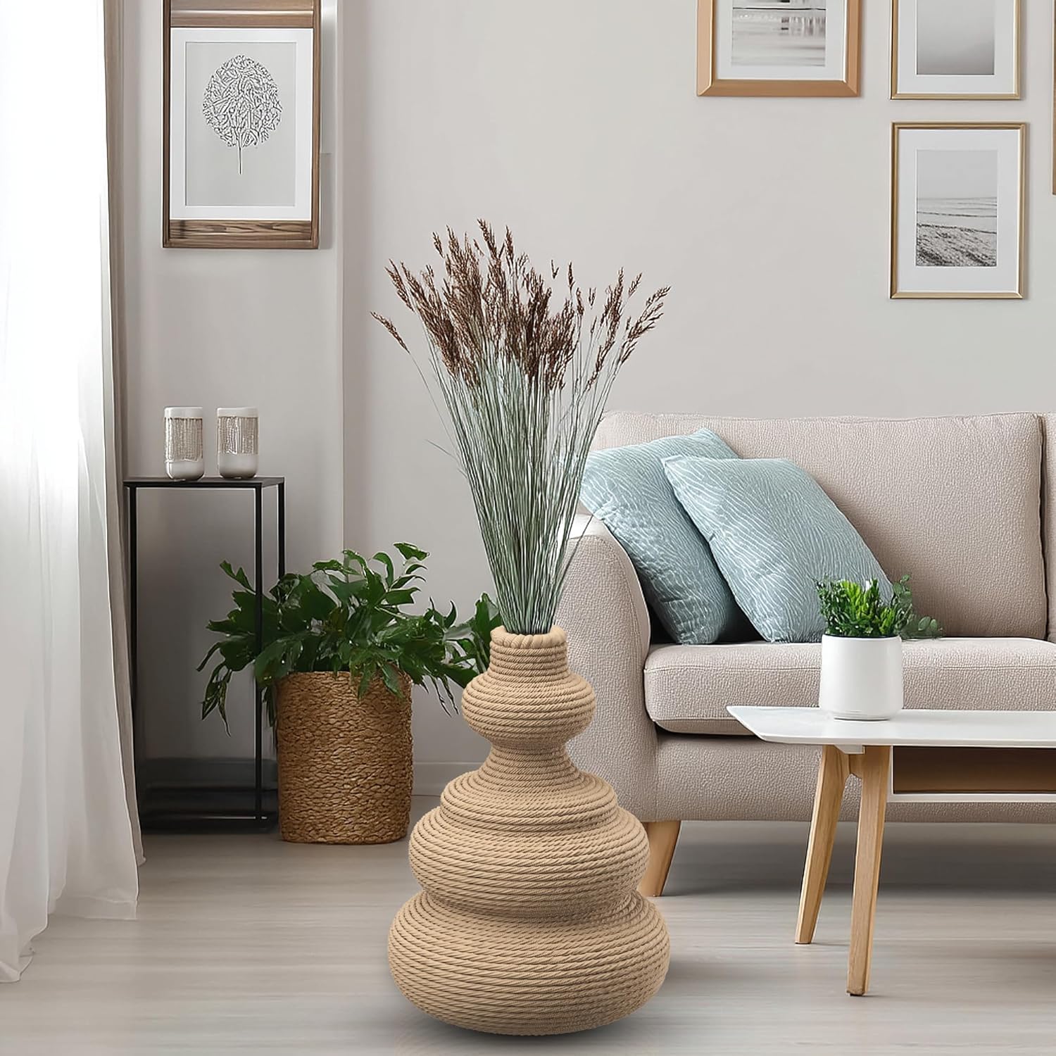 Rattan Woven Flower Vase,White Boho Vases for Decor,Modern Decor Country Style Woven Rustic Vase for Home Decoration